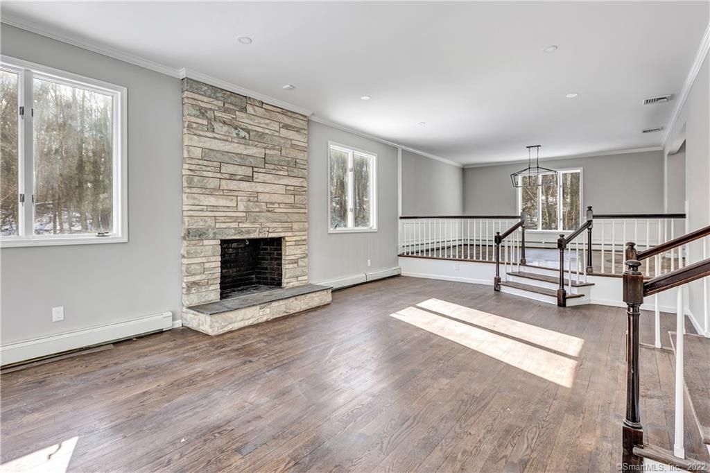 This center hall colonial offered an expansive living space of over 4500 square feet spread across 3 levels, accompanied by a 3-car garage and 4 fireplaces. Nestled on a private 3-acre lot with picturesque surroundings, the property provided ample space and tranquility. The home showcased a dream kitchen with a spacious open layout, oversized island, and high-end stainless steel appliances, while other highlights included a luxurious primary suite with fireplace, walk-in shower, and his-and-hers closets, as well as new hardwood flooring, baths, paint, and lighting throughout. Conveniently located, the property was just a short drive away from Easton village center, Silverman's farm, and the Merritt Parkway.