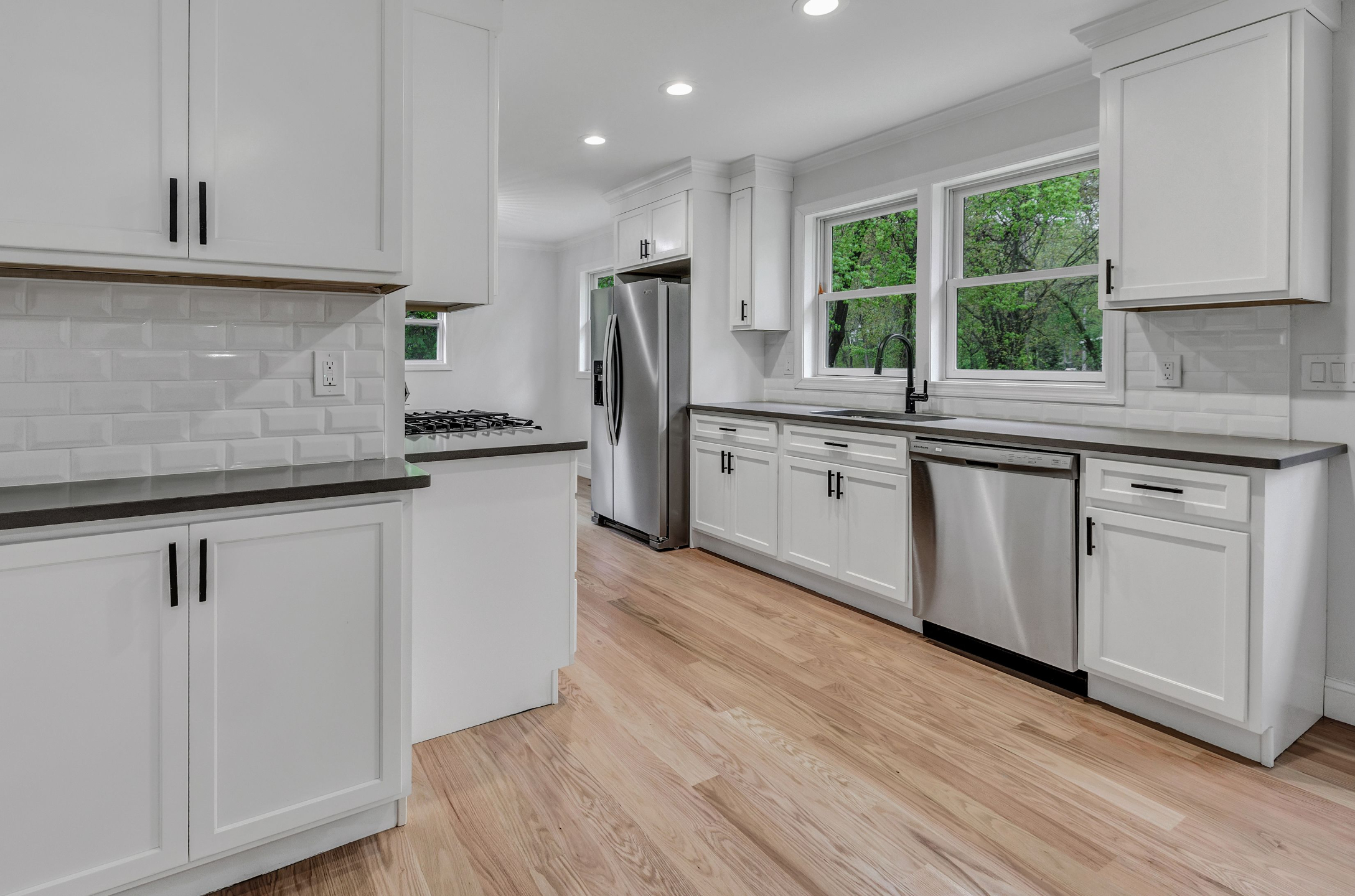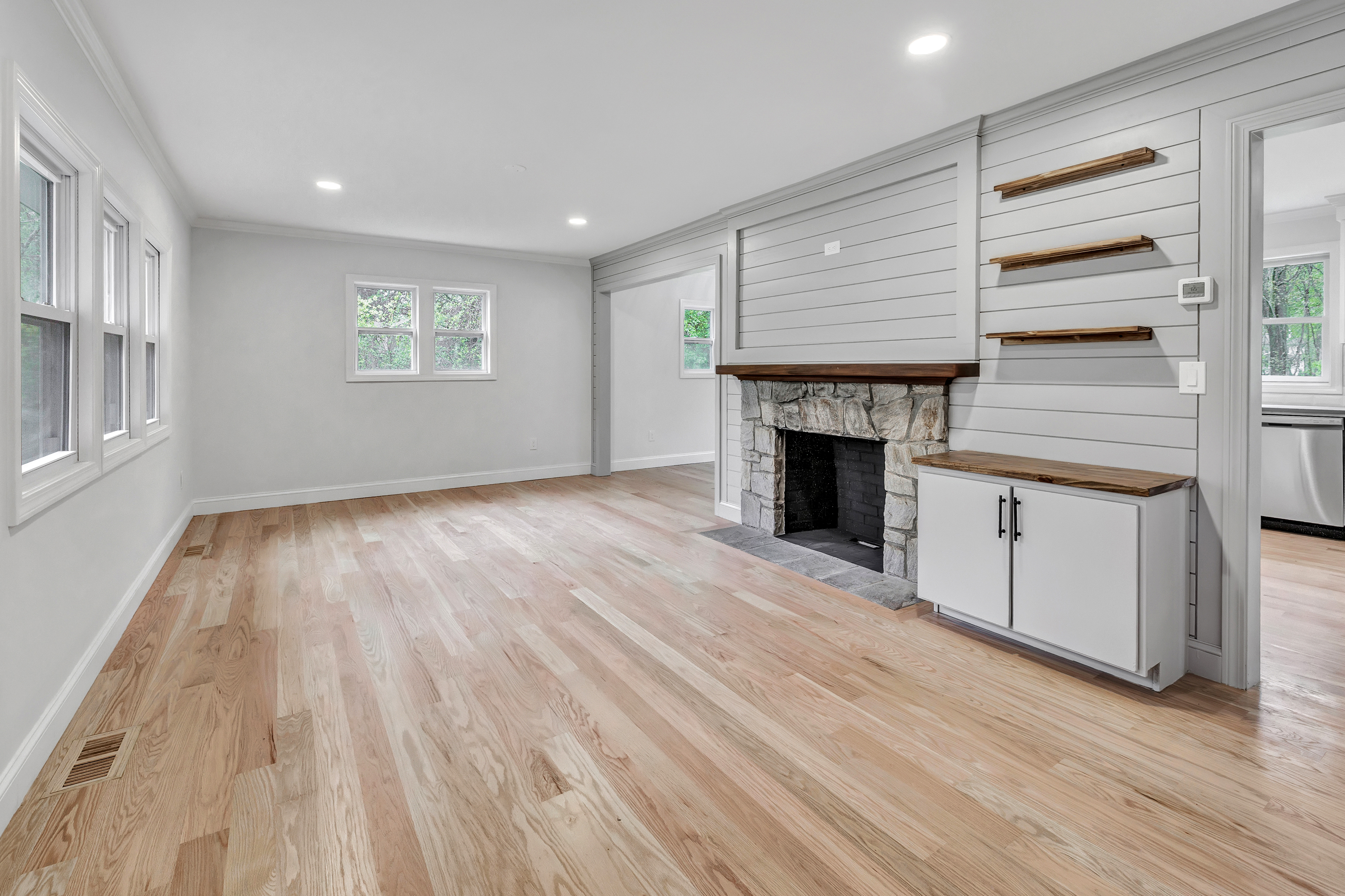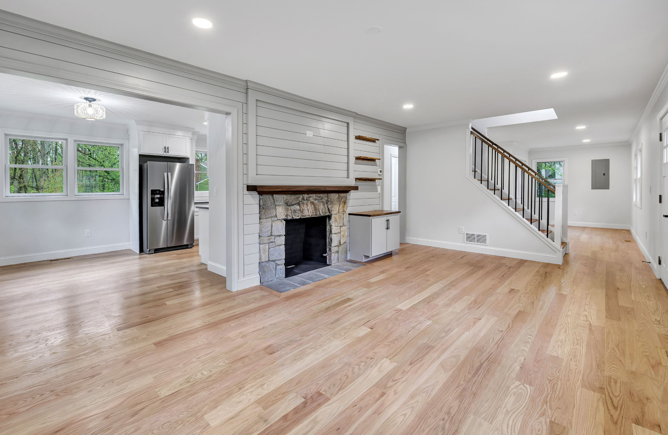 This spacious dormered Cape Cod style house has been gutted and upgraded to the highest standards. The level lot and stone-facing exterior provided strong curb appeal, complemented by a long driveway offering ample guest parking. Inside, the open flow of the floor plan showcased impressive craftsmanship, featuring spacious bedrooms, upgraded bathrooms, and a brand new kitchen equipped with soft-closed drawers, Samsung appliances, stone countertops, and backsplash. The renovated bathrooms demanded attention with their new tile flooring, vanities, toilets, and sconces.